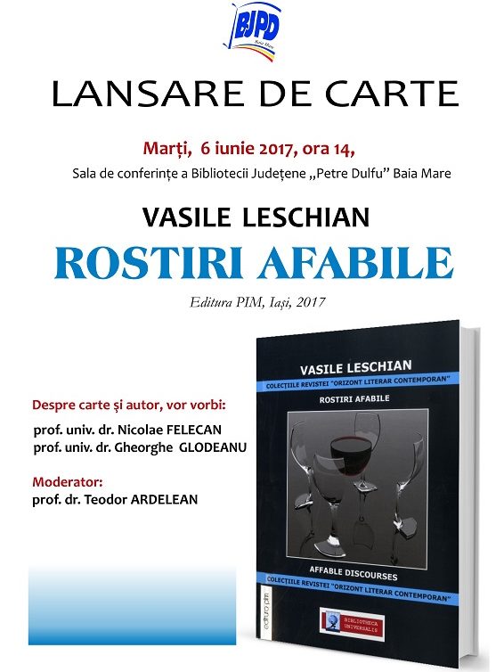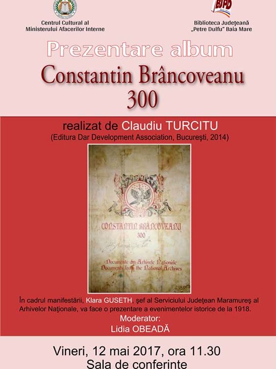 Vineri, 24 martie 2017, ora 17 – Sala de conferinţe