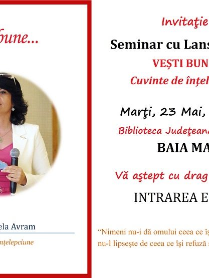 Marţi, 23 mai, ora 17 – Sala de conferinţe