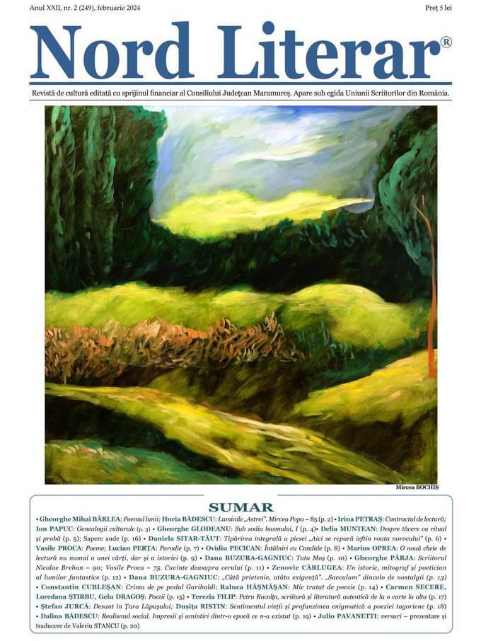 Semnalăm apariția numărului 28, iunie – iulie – august 2024 al revistei „SINTAGME CODRENE”, publicație internațională de literatură, artă, istorie, religie și tradiții. REDACȚIA: Manager fondator: Vasile Dan Marchiș Director general: Al. Florin Țene Director cultural: Mihaela CD Director artistic: Valeria Bilț Director departament publicații (Internațional): Christian W. Schenk Redactor șef: Mariana Moga Redactor șef…