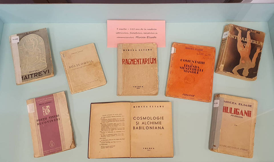 9 martie – 115 ani de la nașterea filosofului, eseistului și romancierului Mircea Eliade – expoziție de carte realizată la Compartimentul Colecții speciale.