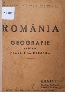 - România: Geografie pentru clasa III-a primară – Bucureşti, Editura Casei Şcoalelor şi a Culturii Poporului, 1947. Cota: D II 3667