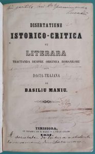 Dizertațiune istorico-critică și literară, Vasile Maniu, Timișoara, 1857.