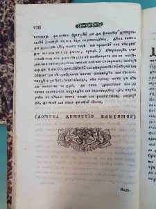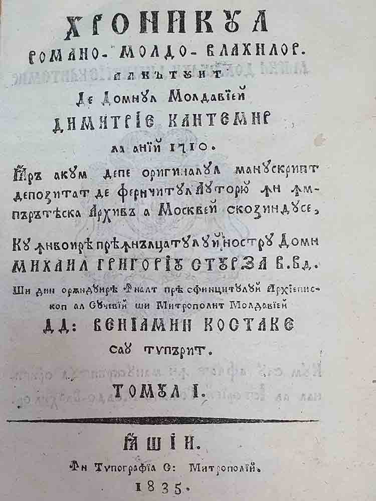Lucrarea publicată în două volume între anii 1835 și 1836 la Iași, la inițiativa mitropolitului Veniamin Costache, cel care a reușit aducerea manuscrisului original din Arhiva Moscovei, este prima imprimare tipografică a acestei opere aparținând marelui cărturar și domn al Moldovei.