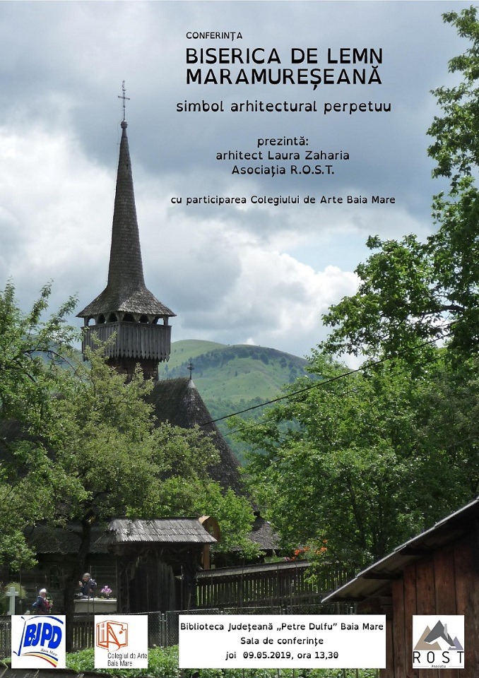 Biblioteca Judeţeană „Petre Dulfu” în colaborare cu Asociaţia R.O.S.T. Maramureş (Reabilitarea Organică a Satului Tradiţional) şi Colegiul de Arte Baia Mare organizează conferinţa „Biserica de lemn maramureşeană – simbol arhitectural perpetuu”.