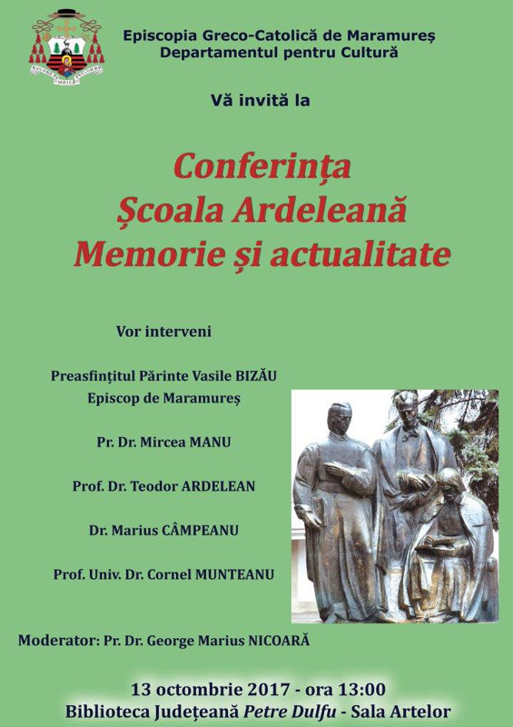 Departamentul pentru cultură al Episcopiei Greco-Catolice a Maramureşului organizează conferinţa „Şcoala Ardeleană – Memorie şi actualitate”.