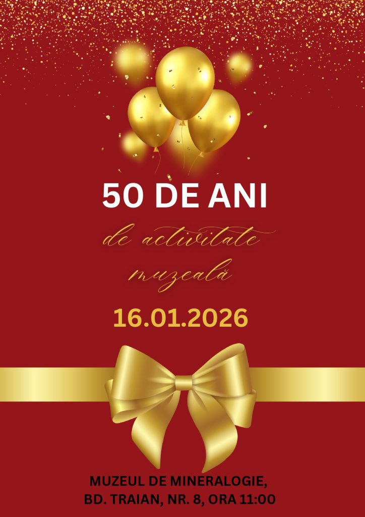 Vineri, 16 ianuarie 2026, la Muzeul de Mineralogie „Victor Gorduza” Baia Mare, cu ocazia împlinirii a 50 de ani de la înființarea Secției de Științe Naturale din cadrul Muzeului Județean Maramureș (17 ianuarie 1976), structură pe care s-a dezvoltat Muzeul Județean de Mineralogie „Victor Gorduza” Baia Mare, va avea loc evenimentul aniversar „50 de ani de activitate muzeală”.