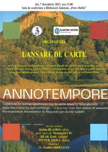 Electro Sistem SRL în colaborare cu Biblioteca Județeană „Petre Dulfu” Baia Mare organizează lansarea albumului „ANNOTEMPORE – Călătorie în lumea anotimpurilor în Baia Mare și împrejurimi”, Baia Mare, 2023, al cincisprezecelea volum din suita de albume cu tematici diferite, dar specifice zonei geografice, menită să pună în valoare: istoria, cultura artistică şi spiritualitatea acestor meleaguri şi a cărei iniţiativă şi finanţare aparţin grupului Electro Sistem al cărui director general este Ştefan Blasko.