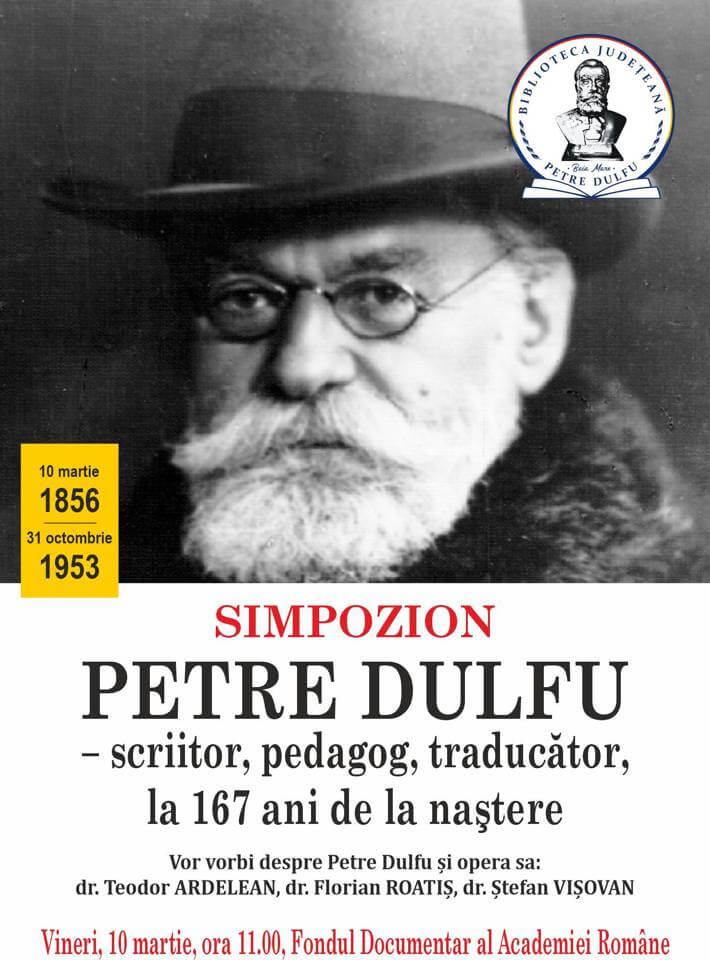 Biblioteca Județeană „Petre Dulfu” Baia Mare organizează simpozionul „Petre Dulfu – scriitor, pedagog, traducător”, cu ocazia împlinirii a 167 ani de la nașterea patronului spiritual al instituției.