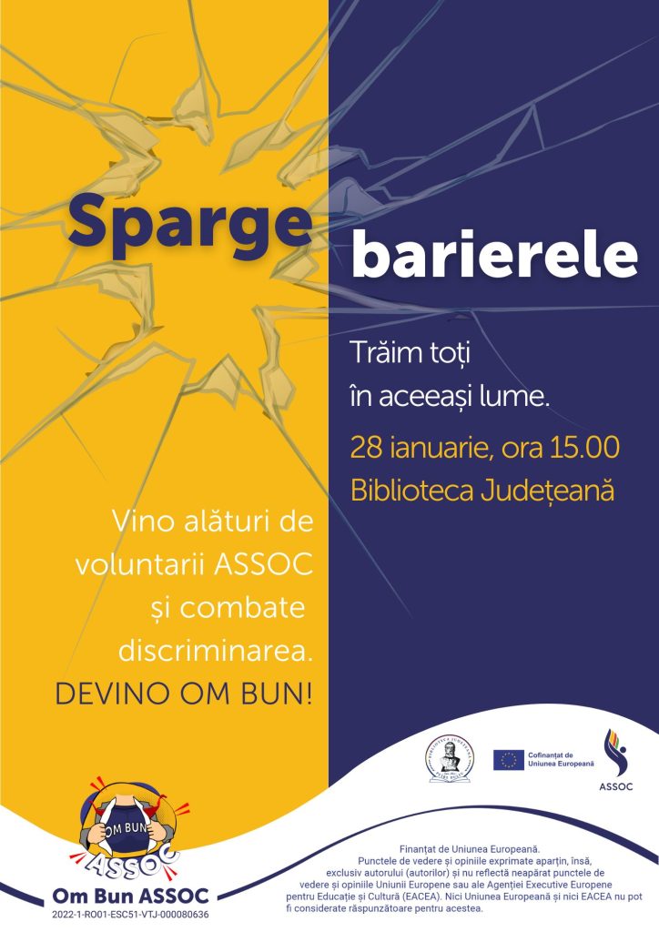 Biblioteca Județeană „Petre Dulfu” în colaborare cu Asociația ASSOC Baia Mare organizează atelierul „Sparge barierele – Combaterea discriminării”, destinat tinerilor și voluntarilor asociației.
