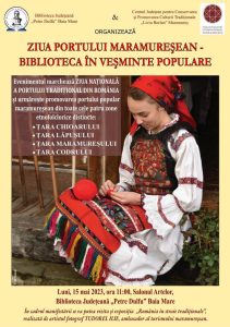 Sub egida Zilei Naționale a Portului Tradițional din România, instituită prin Legea 102/2015 și sărbătorită în cea de-a doua duminică a lunii mai, se va desfășura „Ziua Portului Maramureșean – Biblioteca în straie populare”, eveniment organizat de Biblioteca Județeană „Petre Dulfu” Baia Mare în parteneriat cu Centrul Județean pentru Conservarea și Promovarea Culturii Tradiționale „Liviu Borlan” Maramureș.