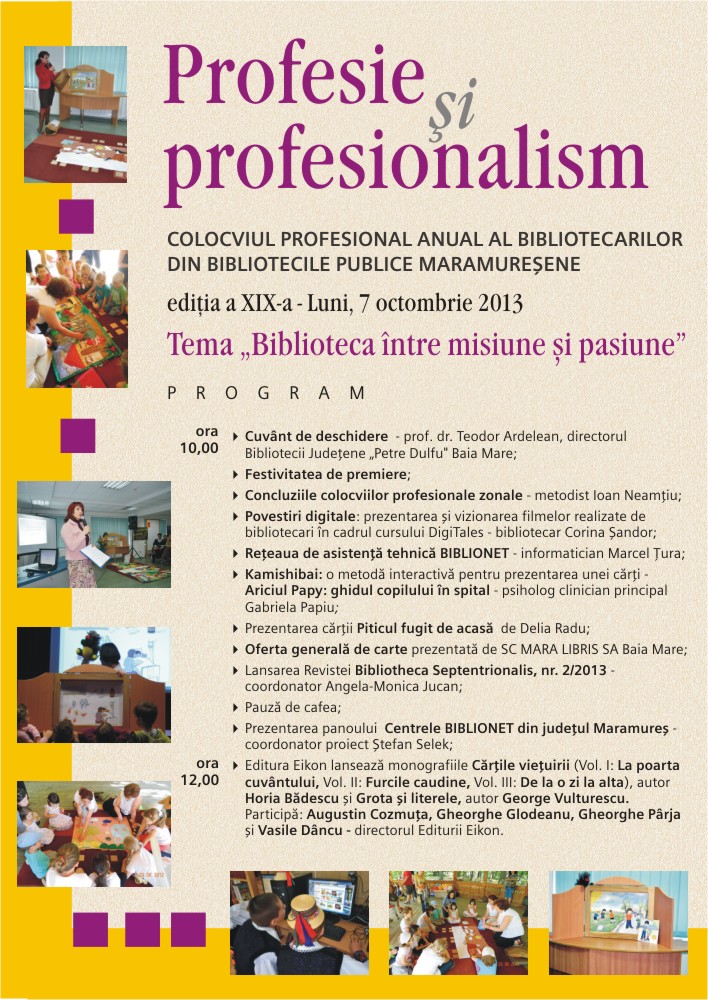COLOCVIUL PROFESIONAL ANUAL AL BIBLIOTECARILOR DIN BIBLIOTECILE PUBLICE MARAMUREŞENE – Biblioteca între misiune şi pasiune, ediţia a XIX-a