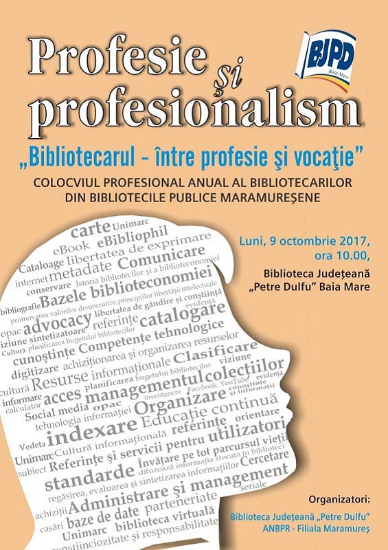 Luni, 9 octombrie, ora 10, la Sala de conferinţe va avea loc colocviul anual al bibotecarilor din bibliotecile publice din judeţul Maramureş, cu tema „Bibliotecarul – între profesie şi vocaţie„.