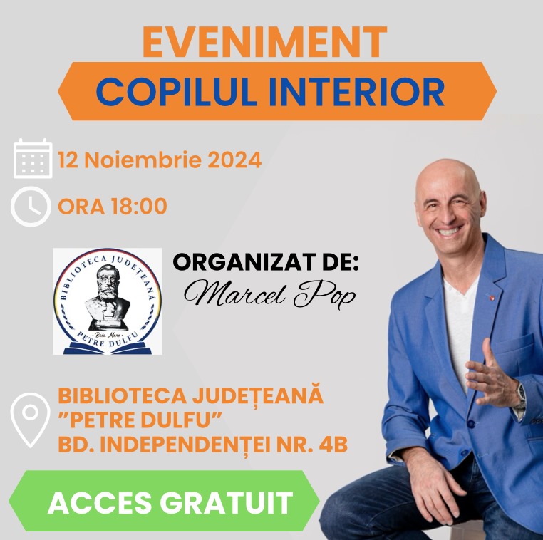 Biblioteca Județeană „Petre Dulfu” organizează conferința „Copilul interior”. Prezintă: Marcel Pop.