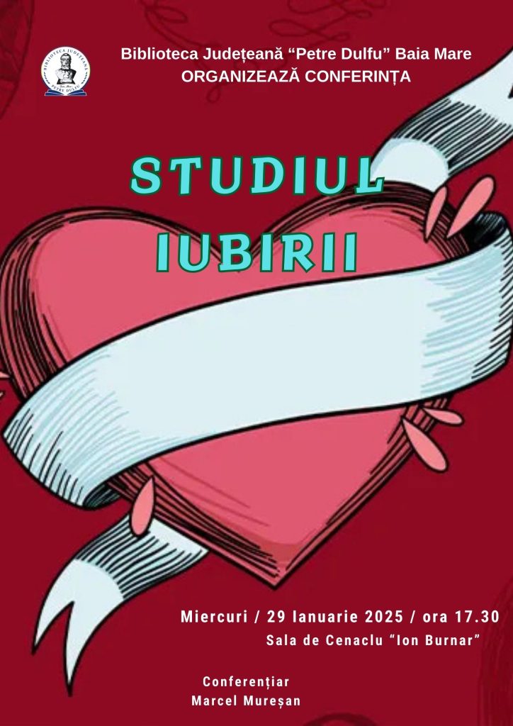 Biblioteca Județeană „Petre Dulfu” organizează a cincisprezecea întâlnire din cadrul ciclului de conferințe „Provocările gândirii”, cu tema „Studiul iubirii”.