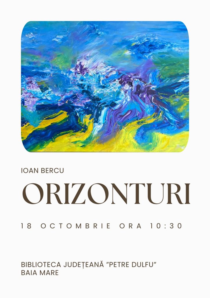 Biblioteca Județeană „Petre Dulfu” organizează vernisajul expoziției de pictură intitulate „Orizonturi”, aparținând artistului plastic Ioan Bercu. Expoziția va putea fi vizitată în perioada 13-26 octombrie 2025.