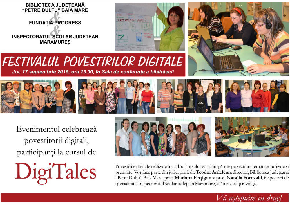 Biblioteca Județeană “Petre Dulfu” Baia Mare şi Fundaţia Progress, în colaborare cu Inspectoratul Școlar Județean Maramureș, organizează un festival care să celebreze povestitorii digitali, participanți la cursul de DigiTales.