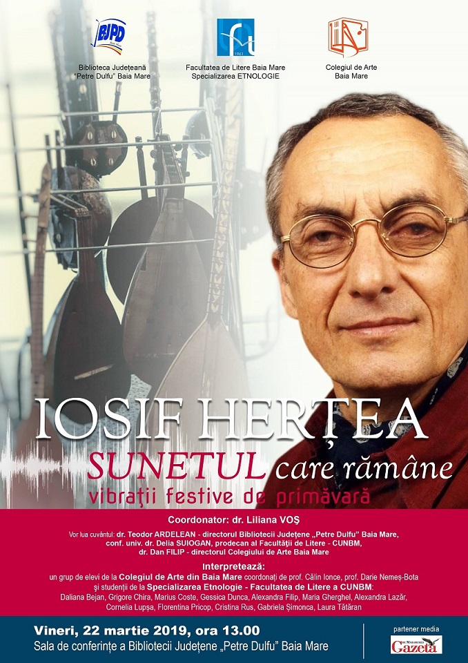 Biblioteca Judeţeană „Petre Dulfu” în colaborare cu Specializarea Etnologie – Facultatea de Litere a Centrului Universitar Nord Baia Mare şi Colegiul de Arte Baia Mare organizează manifestarea „Iosif Herţea. Sunetul care rămâne: vibraţii festive de primăvară”, coordonator: dr. Liliana Voş.