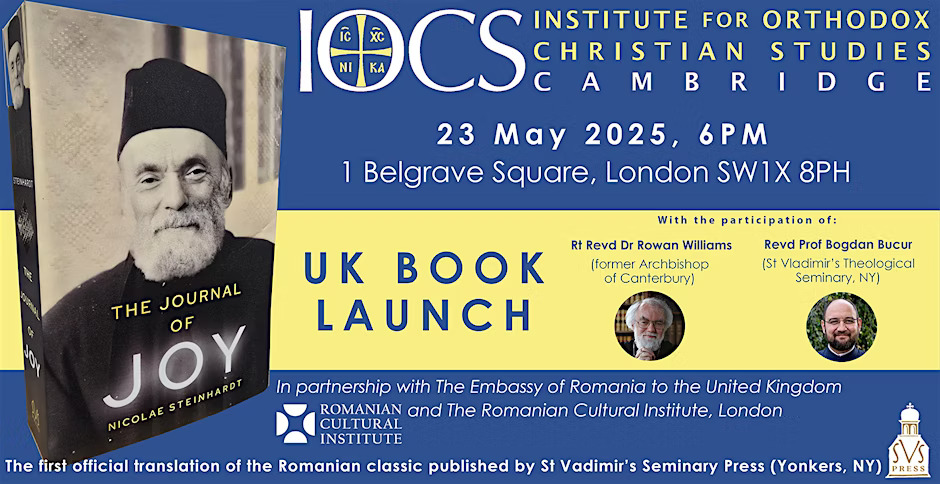 Institutul pentru Studii Creștine Ortodoxe Cambridge în parteneriat cu Ambasada României în Regatul Unit al Marii Britanii și al Irlandei de Nord și cu Institutul Cultural Român din Londra organizează lansarea traducerii în limba engleză a volumului „Jurnalul fericirii”, de Nicolae Steinhardt, prima traducere oficială publicată de St. Vladimir’s Seminary Press (Yonkers, New York, 2024).