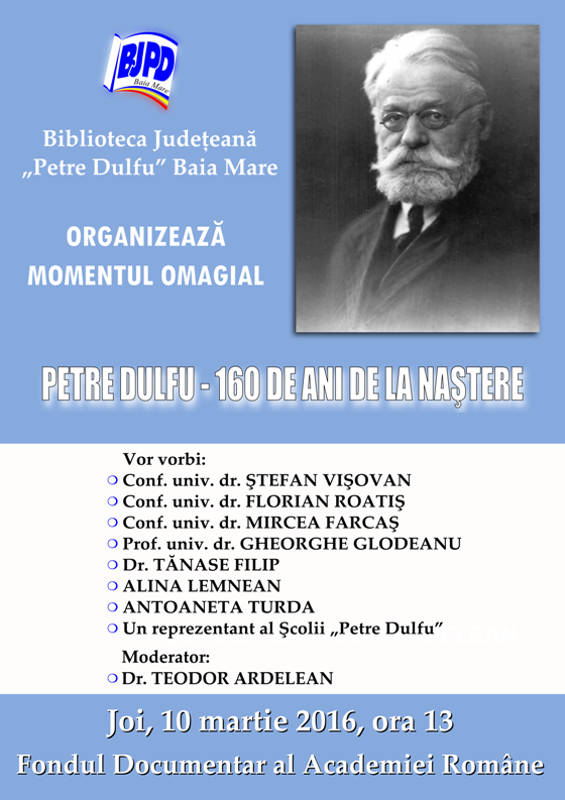 va avea loc momentul omagial „Petre Dulfu – 160 de ani de la naştere„.