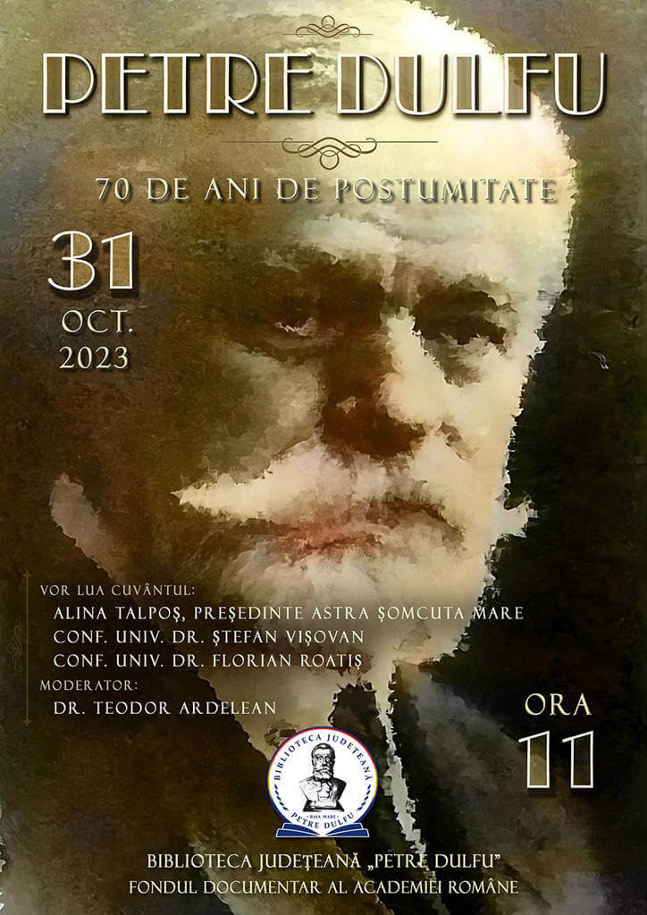 Biblioteca Județeană „Petre Dulfu” organizează manifestarea „Petre Dulfu – 70 de ani de postumitate”, cu ocazia împlinirii a 70 de ani de la trecerea în eternitate a patronului spiritual al instituției noastre.