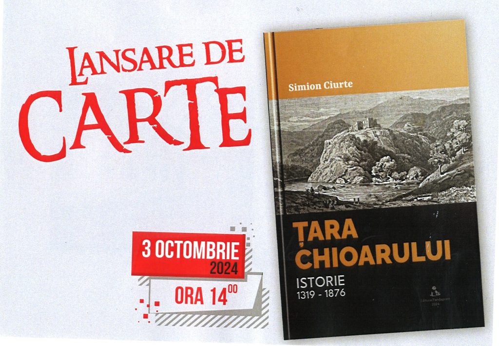 Primăria orașului Șomcuta Mare organizează lansarea volumului „Țara Chioarului – istorie: 1319-1876”, autor Simion Ciurte, apărut la Editura Pandaprint, Baia Mare, 2024.