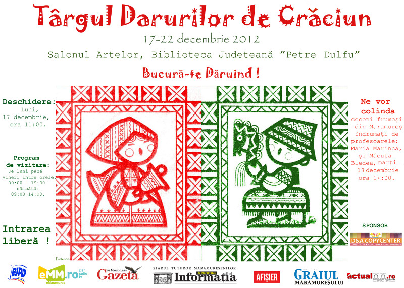 Va avea loc deschiderea „Târgului Darurilor de Crăciun” ediția a II-a 2012, organizat de designerul Ileana Danci-Horoba.