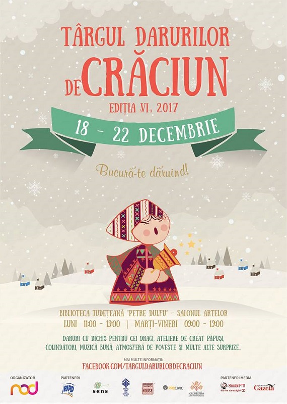 Va avea loc deschiderea celei de-a VI-a ediţii a Târgului Darurilor de Crăciun, eveniment organizat de Asociaţia „NOD”, cu sprijinul Bibliotecii Judeţene „Petre Dulfu”.