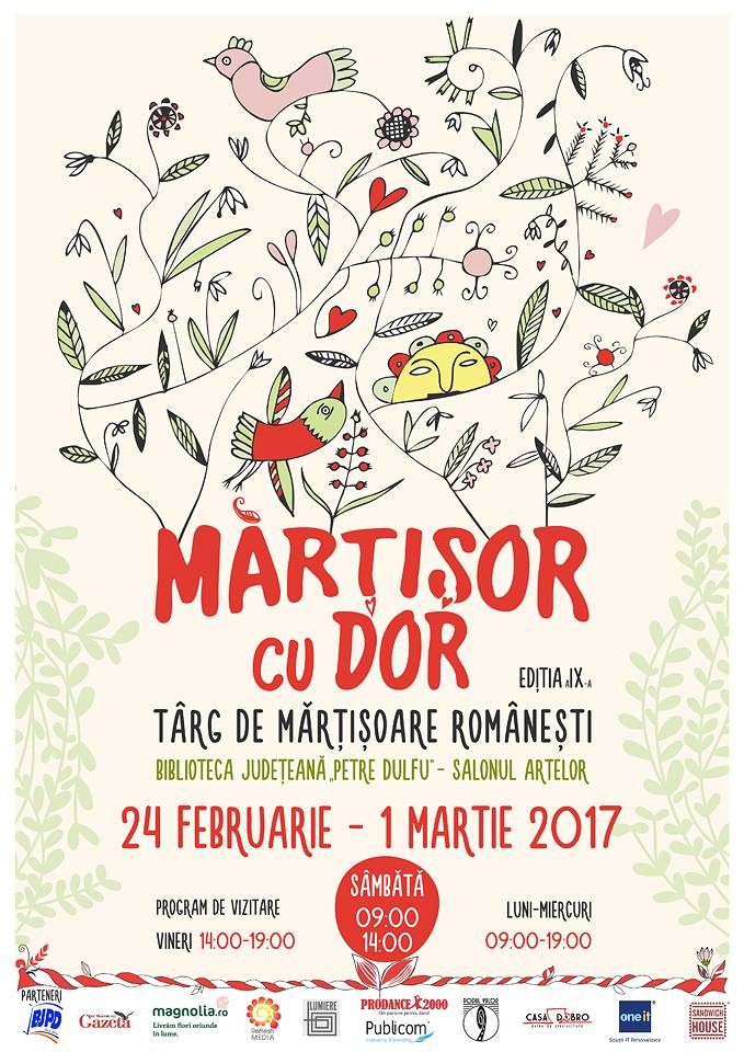 Va avea loc deschiderea târgului „Mărţişor cu dor”, ediţia a IX-a, 2017 în organizarea ceramistei Ileana Danci-Horoba. Expoziţia va putea fi vizitată la Salonul Artelor până în data de 1 martie.
