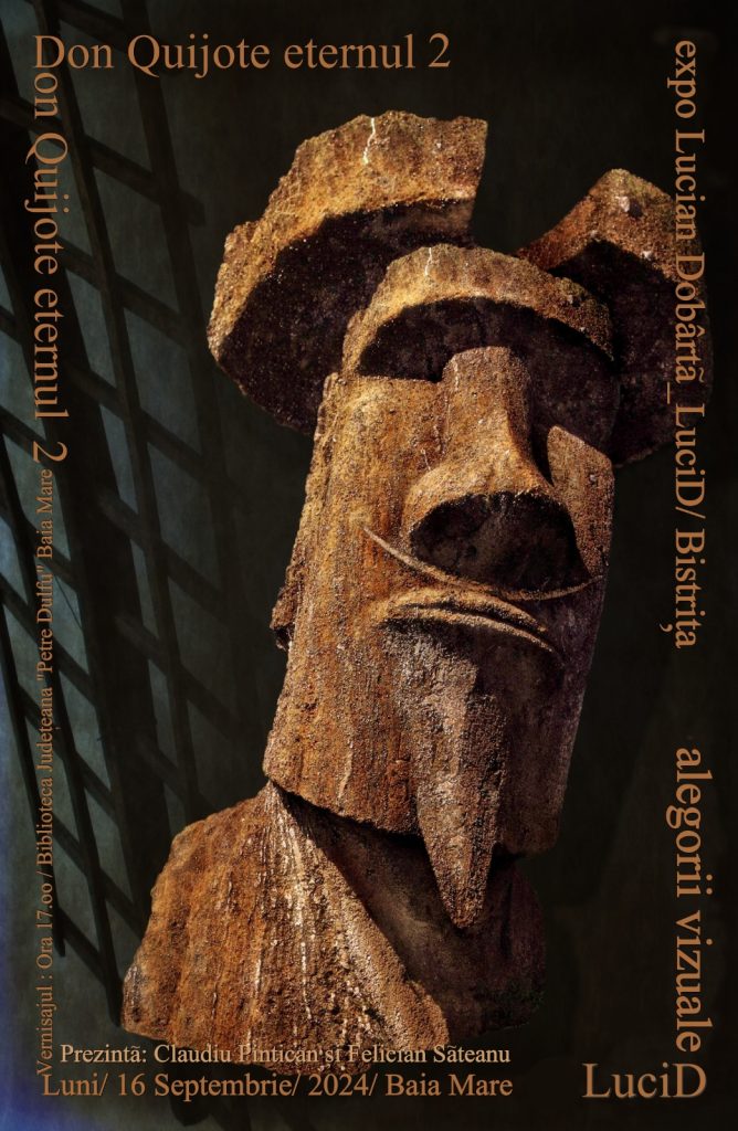 Biblioteca Județeană „Petre Dulfu” organizează vernisajul expoziției de fotografie intitulată „DON QUIJOTE ETERNUL 2” a artistului fotograf bistrițean Lucian Dobârtă, care ne propune un periplu de alegorii vizuale, având ca laitmotiv cunoscutul personaj medieval al scriitorului spaniol Miguel de Cervantes, „Don Quijote de la Mancha”. Aceasta poate fi vizitată la Salonul Artelor în perioada 19-30 septembrie.