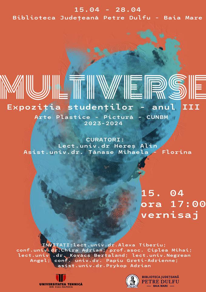 Facultatea de Arte Plastice – Pictură din cadrul Centrului Universitar Nord Baia Mare – Universitatea Tehnică din Cluj-Napoca în colaborare cu Biblioteca Județeană „Petre Dulfu” Baia Mare organizează vernisajul expoziției de pictură intitulată „Multiverse” a studenților anul III.
