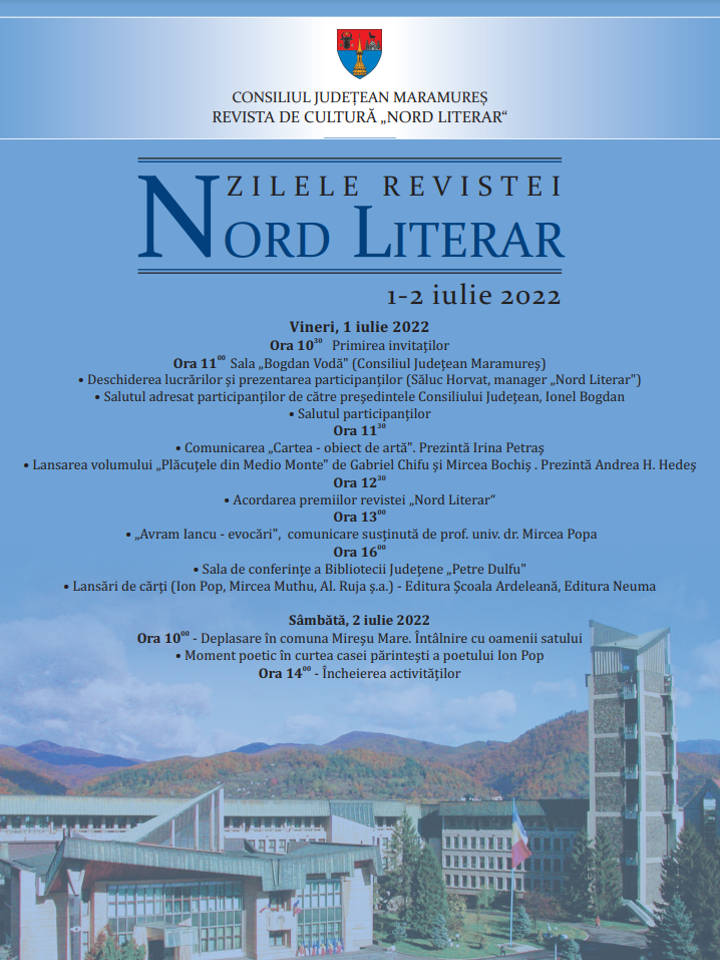 Biblioteca Județeană „Petre Dulfu” Baia Mare în colaborare cu Revista de cultură „Nord Literar” organizează lansări de carte în cadrul ediției a XV-a a Zilelor Revistei „Nord Literar”.