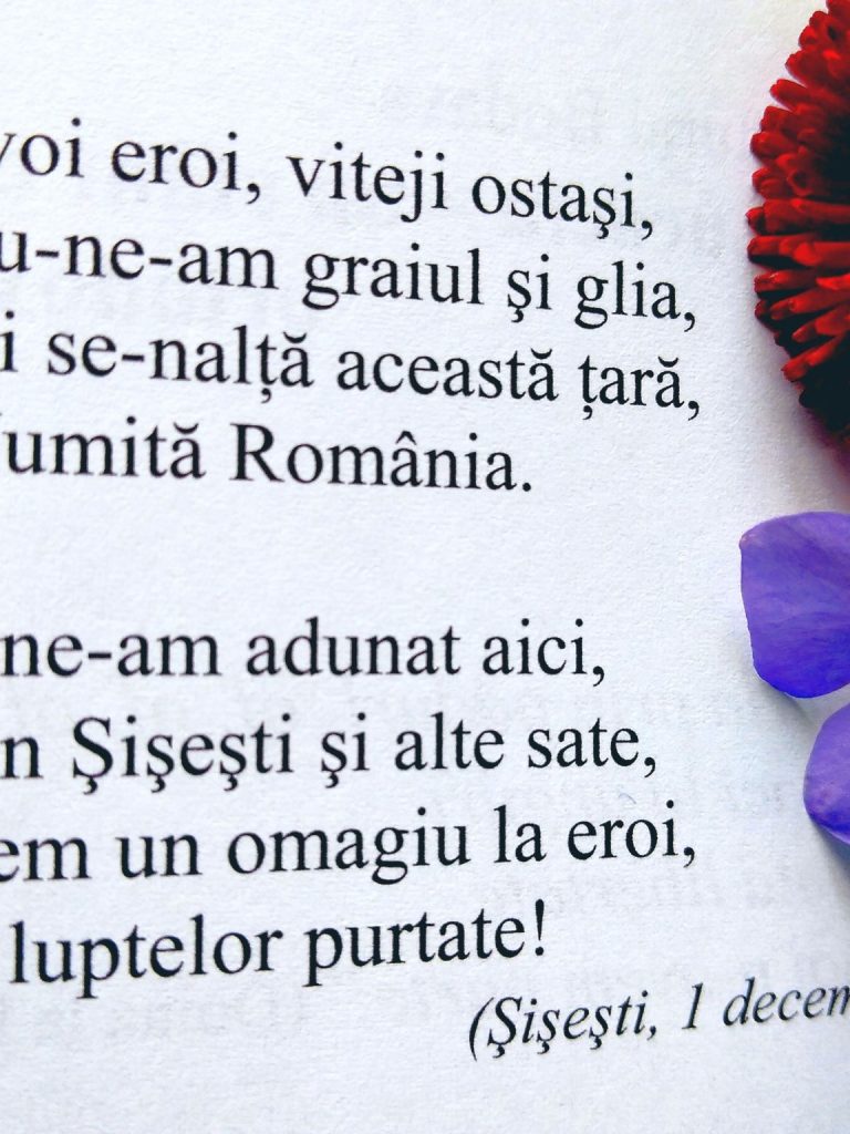 Citatul de Duminică, extras din cartea cu titlul: „Şişeşti – Vatră străbună Vol. 5”; [Colectivul de redacţie: Gavril Babiciu, Lucia Pop, Gabriela Maria Liahovici]; subiect: Şişeşti, monografii naţionale; localizare: Compartiment Împrumut carte pentru adulți. ______________ La mulţi ani, România! La mulţi ani, români! La mulţi ani tuturor concetăţenilor noştri! Dumnezeu să binecuvânteze întreaga lume!