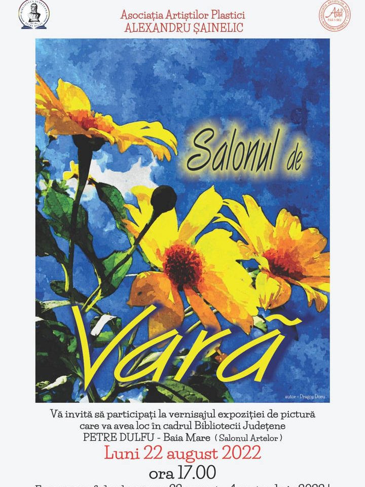 Luni, 22 august, de la ora 17, în Salonul Artelor, Biblioteca Judeţeană „Petre Dulfu” Baia Mare în colaborare cu Asociația Artiștilor Plastici „Alexandru Șainelic” a organizat vernisajul „Salonului de vară” al membrilor asociației. Au fost expuse lucrări de pictură în ulei, grafică, gravură, acuarelă, flori uscate, tehnică mixtă, fotografie prelucrată. Expoziția va fi deschisă în…