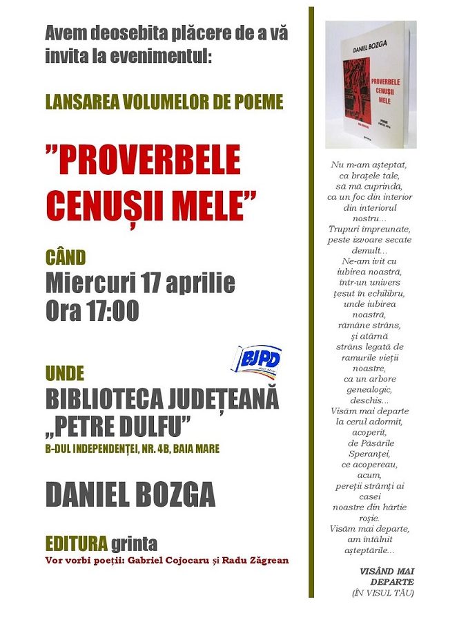 Miercuri, 17 aprilie, ora 17.00 – Sala de conferinţe
