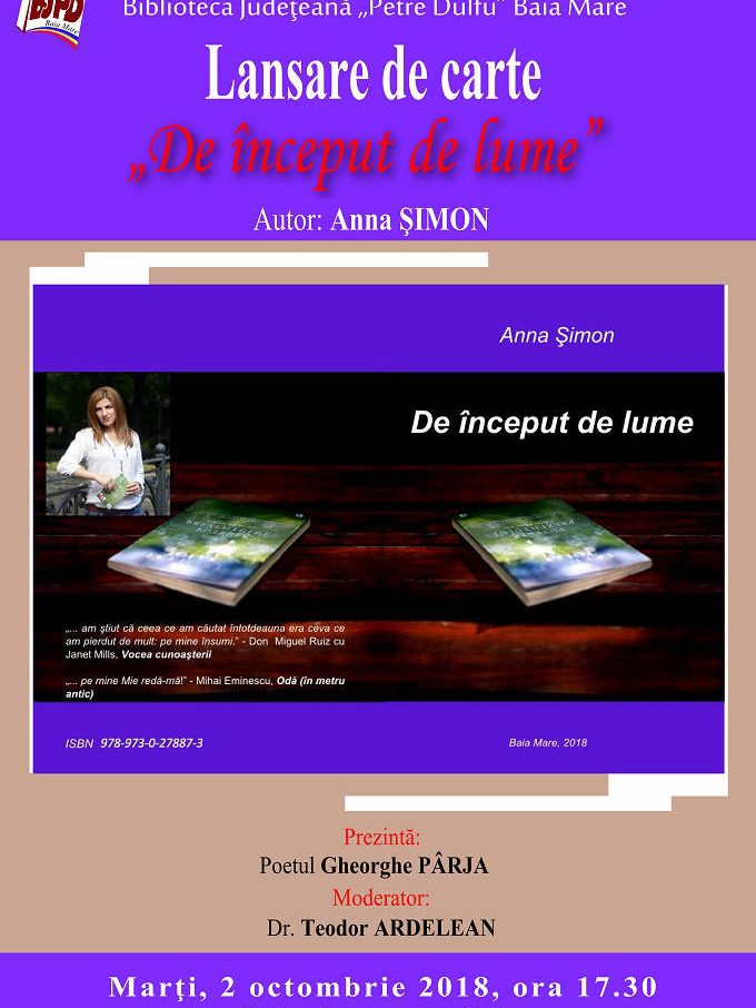 Vineri, 21 septembrie, ora 18:00 – Sala de conferinţe