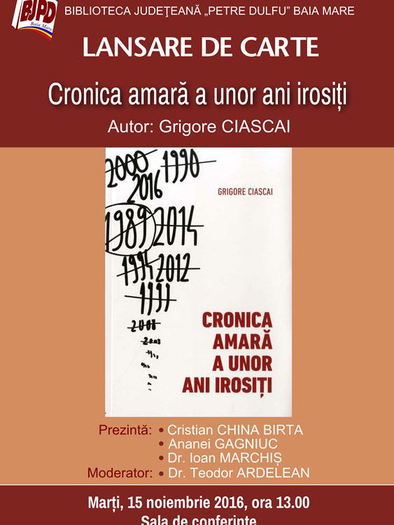 Luni, 5 martie, ora 17 – Sala de conferinţe