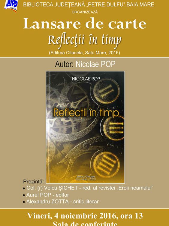Joi, 10 noiembrie, ora 17 – în Sala de conferinţe