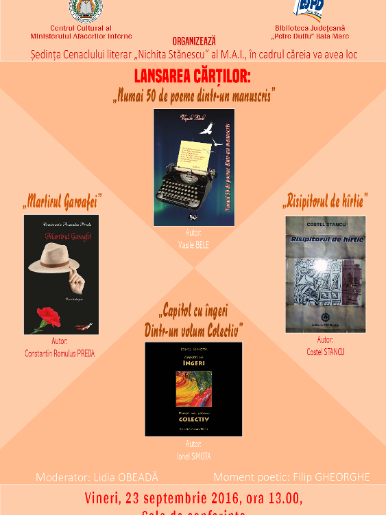 Vineri, 23 septembrie, ora 13:00 – Sala de conferinţe