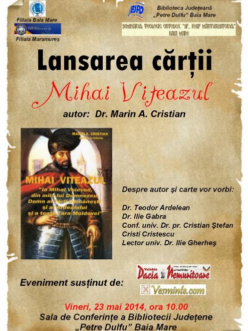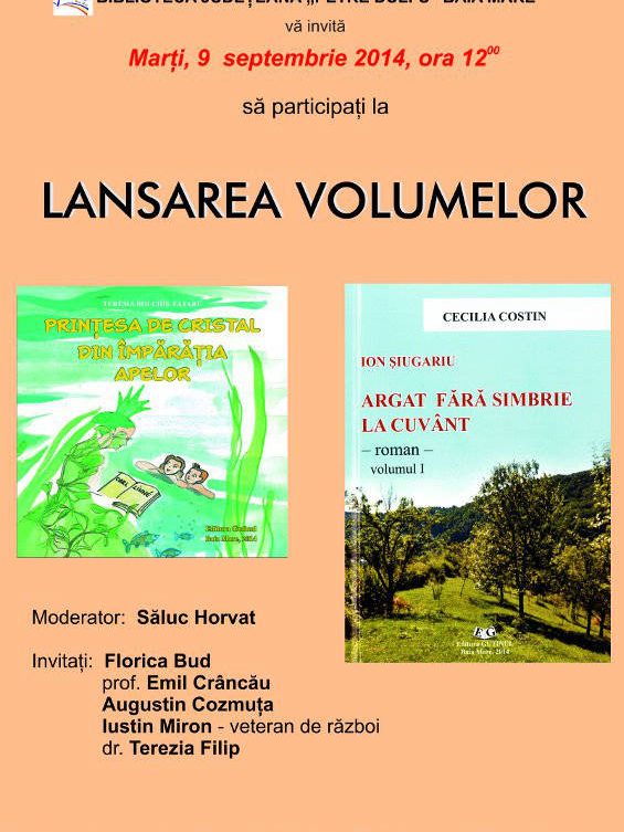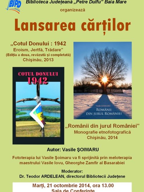 Joi, 12 iunie 2014 ora 13.00 – Sala de Conferinţe a Bibliotecii Judeţene „Petre Dulfu”