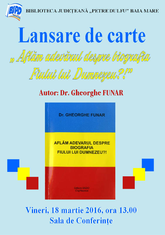 Va avea loc lansarea cărţii „Aflăm adevărul privind biografia Fiului lui Dumnezeu?!”, autor Dr. Gheorghe Funar, apărută la Editura GEDO, Cluj-Napoca.