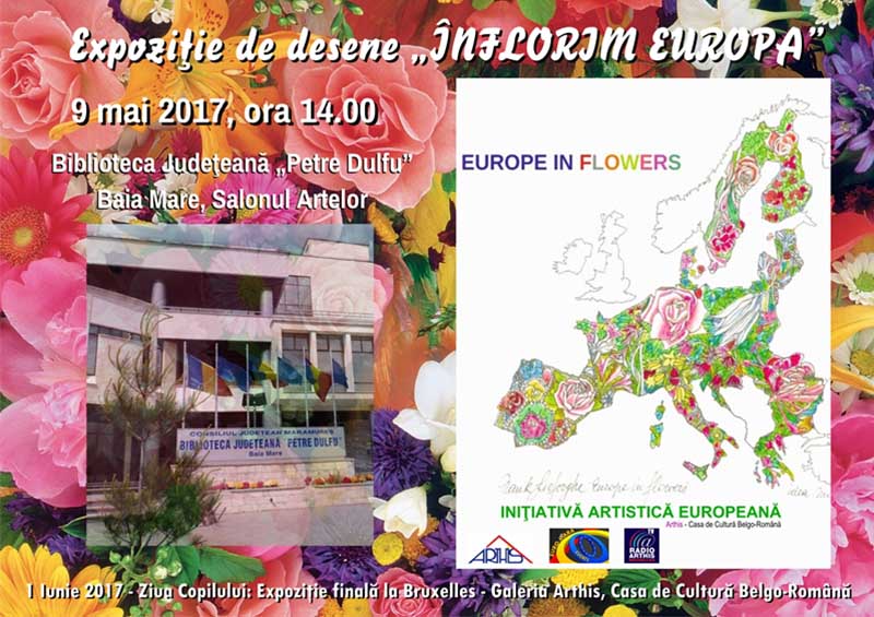 avea loc vernisajul expoziţiei de desene „Înflorim Europa„, organizat de „Arthis” – Casa de Cultură Belgo-Română din Bruxelles, în parteneriat cu Asociaţia Euro-Mara Events (Preşedinte: Doris Uglar) din Baia Mare şi Biblioteca Judeţeană „Petre Dulfu”.