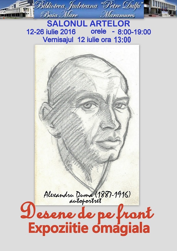 Va avea loc vernisajul ”Expoziției omagiale Alexandru Duma” pictor tăuțean (1887-1916), membru al Şcolii Băimărene de Pictură, mort pe front în anul 1916.