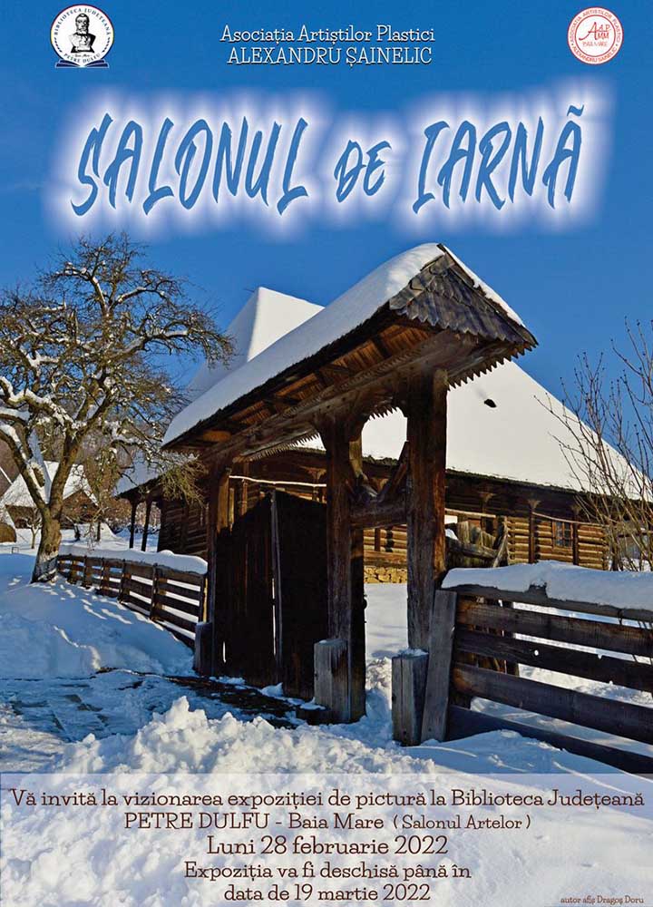 Biblioteca Județeană „Petre Dulfu” în colaborare cu Asociația Artiștilor Plastici „Alexandru Șainelic” vă invită să vizionați expoziția de pictură intitulată „Salonul de iarnă”, al membrilor asociației. Aceasta poate fi vizitată în perioada 28 februarie – 19 martie, la Salonul Artelor din cadrul Bibliotecii Județene „Petre Dulfu”.