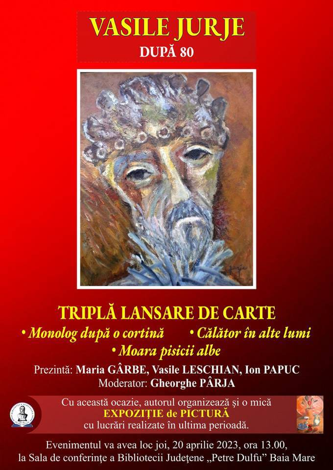 Biblioteca Județeană „Petre Dulfu” organizează manifestarea „Vasile Jurje – După 80”, care cuprinde: o triplă lansare de carte a artistului plastic, precum și o expoziție de pictură cu lucrări realizate de artist în ultima perioadă.