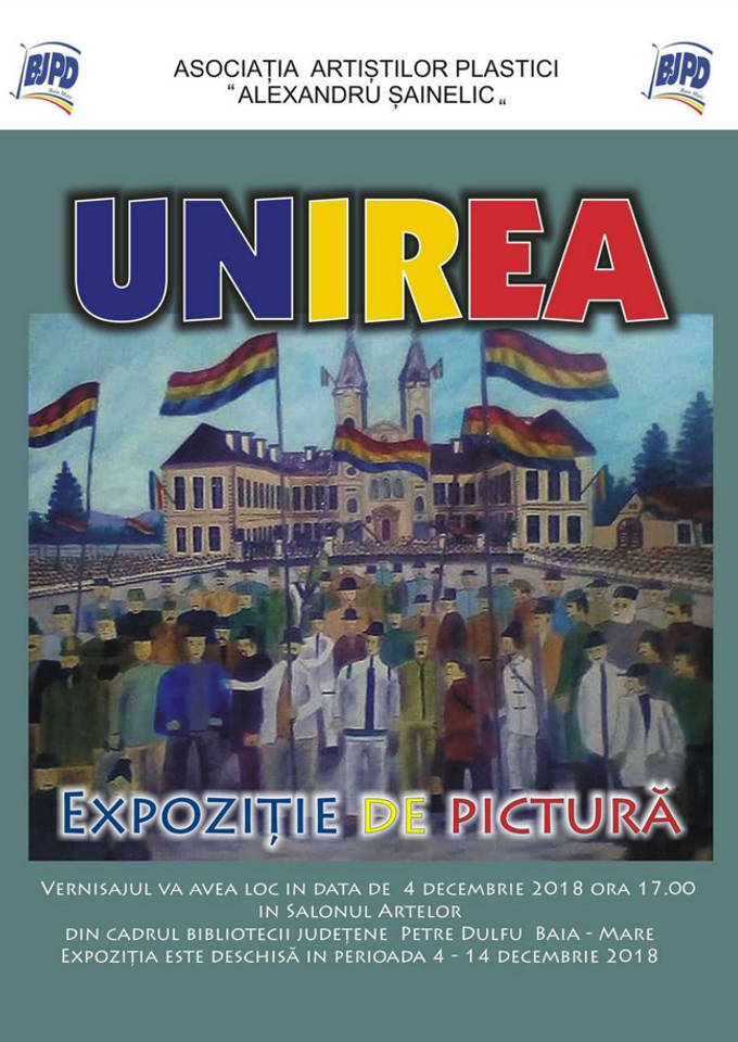 Va avea loc vernisajul expoziţiei de pictură intitulate „Unirea”, a membrilor Asociaţiei Artiştilor Plastici „Alexandru Şainelic”, eveniment organizat în colaborare cu Biblioteca Judeţeană „Petre Dulfu”.