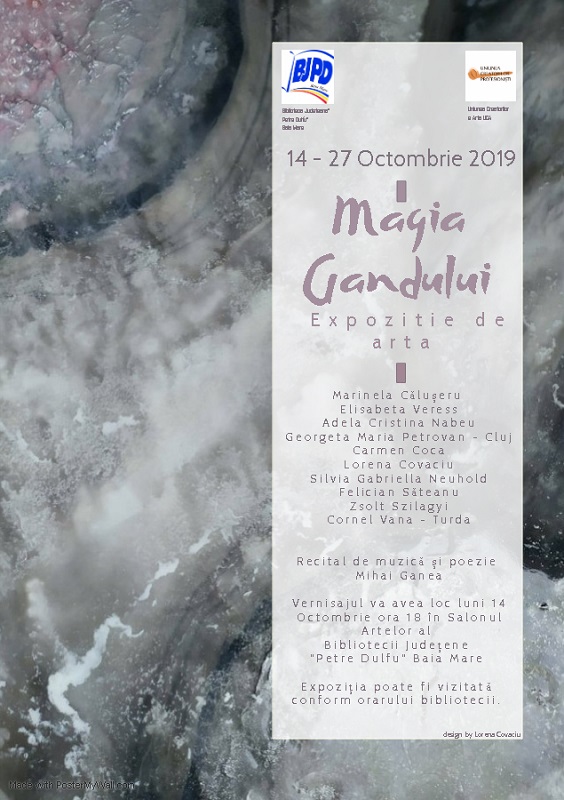 Va avea loc vernisajul expoziţiei de artă „Magia gândului”, organizată de Uniunea Creatorilor de Artă în colaborare cu Biblioteca Judeţeană „Petre Dulfu” Baia Mare.
