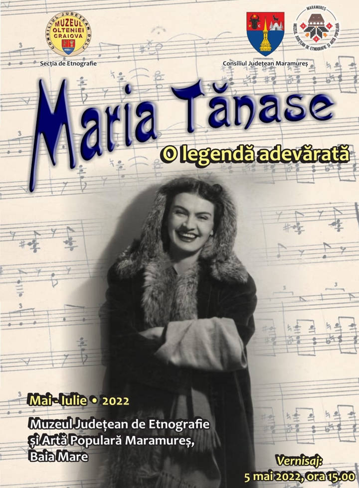 Muzeul Județean de Etnografie și Artă Populară Maramureș, în parteneriat cu Muzeul Olteniei Craiova-Secția de Etnografie, organizează în perioada 05 mai 2022-30 iulie expoziția itinerantă ,, Maria Tănase – O legendă adevărată”.