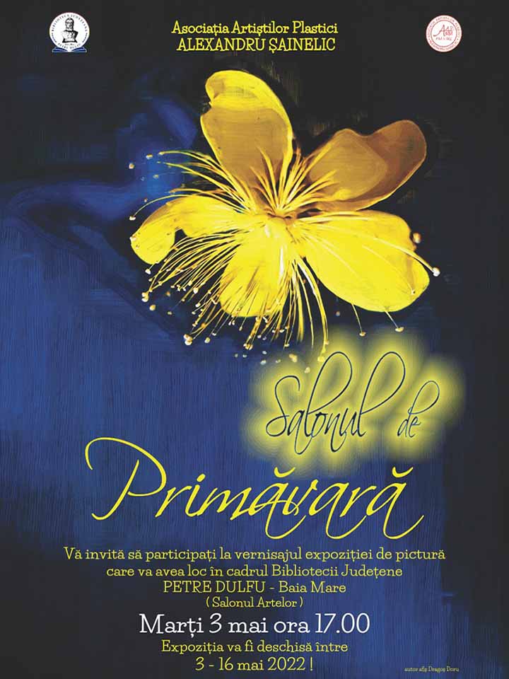 Asociația Artiștilor Plastici „Alexandru Șainelic” în colaborare cu Biblioteca Județeană „Petre Dulfu” organizează vernisajul Salonului de primăvară al membrilor asociației.