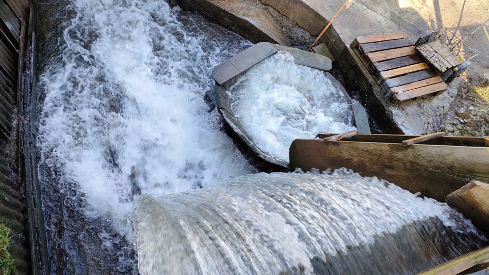 Nea Dănilă, cu ochii mângâiați de o bucurie sufletească, și tanti Titiana Mecleș, energică mai ceva ca apa din vâltoare, ne-au explicat cum funcționează toate instalațiile tehnice, puse în mișcare de forța apei. Am avut mare noroc să fie un sătean cu mălai la măcinat, să vedem cum apele deviate printr-un jgheab pun în mișcare roata morii și piatra de măcinat, în timp ce vâltoarea mesteca flămândă la cergi, cuverturi și țoale.