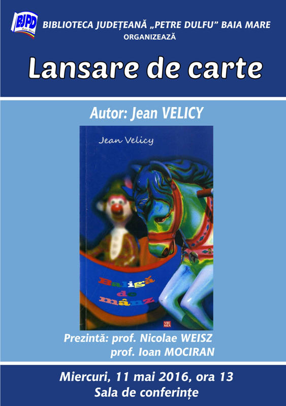 Jean Velicy, medic urolog de origine băimăreană, vă invită la lansarea cărţii sale „Baligă de mânz”, miercuri, 11 mai, ora 13, la Biblioteca Judeţeană.